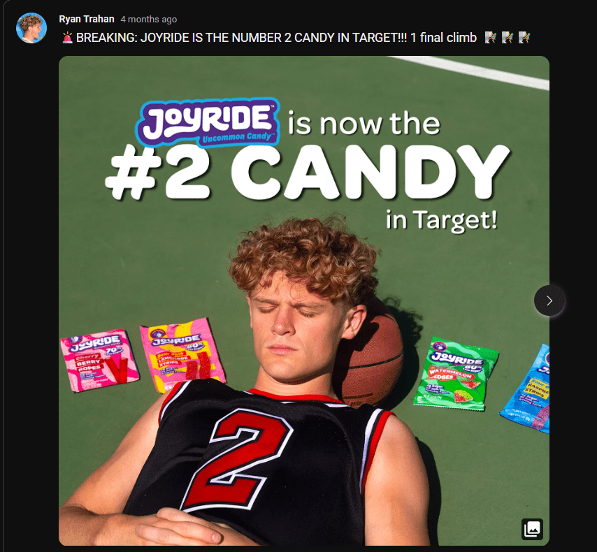 Adding to the wholesomeness of Ryan’s good character and business decisions is his candy brand, Joyride. It has been very popular and is distributed across the country in Target, Kroger, and numerous other retailers. Not only is Ryan Trahan’s YouTube channel great for everyone to watch together, but his candy brand appeals to both parents and kids alike – less sugar, but still candy.