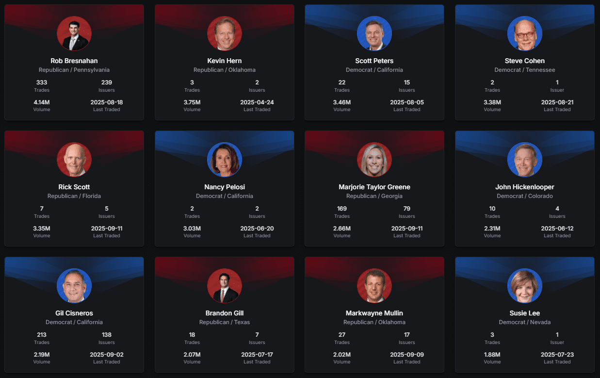 Many of our elected politicians are reportedly making millions of dollars by trading stocks, sometimes under the names of their spouses or children. Democrats and Republicans (not all) are participating in the stock market, and every transaction by a politician can be found online, where rankings of who trades what change daily. The granular details of each politician available on CapitolTrades.com and other politician-focused stock trading sites make it impossible to hide in plain sight.