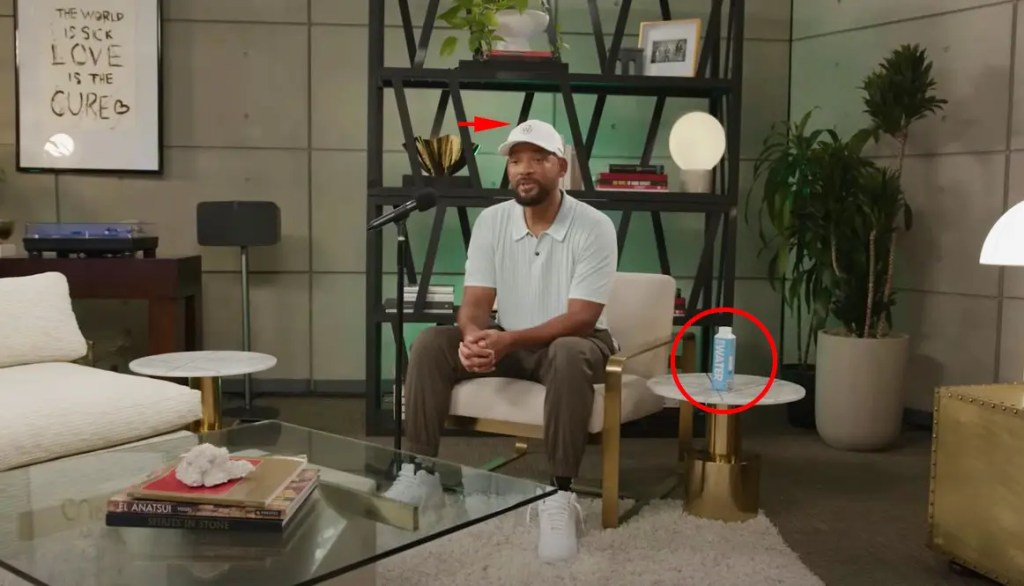 I wish it wasn’t true. I wish there wasn’t anything at all on set. Just take out the water and take off the hat. But now Jaden’s company was brought in to this mess (it still could turn out ok, maybe even boost sales as intended). I think its common sense to not promote your companies during an apology video of this magnitude.