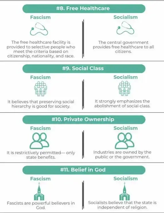 WallStreetMojo summarises the differences between Fascism and Socialism in a few charts below.