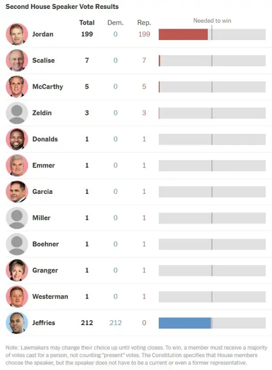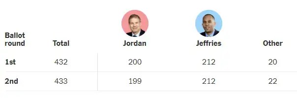 Despite continuing to lose votes and making matters worse, Jordan believes he can change that. Here is the summary of the second round of voting: