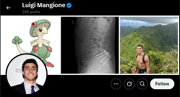 At the top of his X profile, there are three pictures – a Pokemon, an X-Ray, and a photo of himself. At first, my takeaway was that Luigi likes Pokemon. But when in the official Pokemon database, the Pokemon is named Breloom, the 286th character.